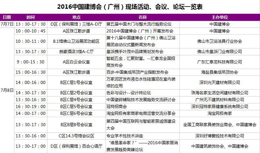 2016中国建博会(广州)现场活动、会议、论坛一览表